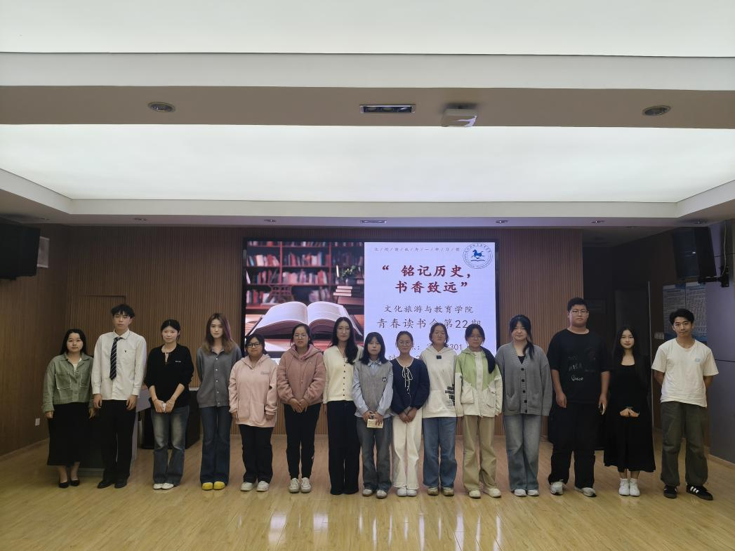 为纪念中国人民抗日战争暨世界反法西斯战争胜利80周年,传承红色基因与爱国情怀,10月15日,文化旅游与教育学院在实训B301开展“青春读书会”第22期主题活动——“铭记历史,书香致远”。