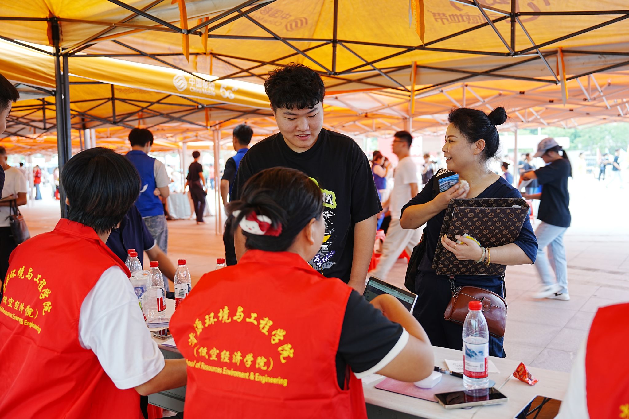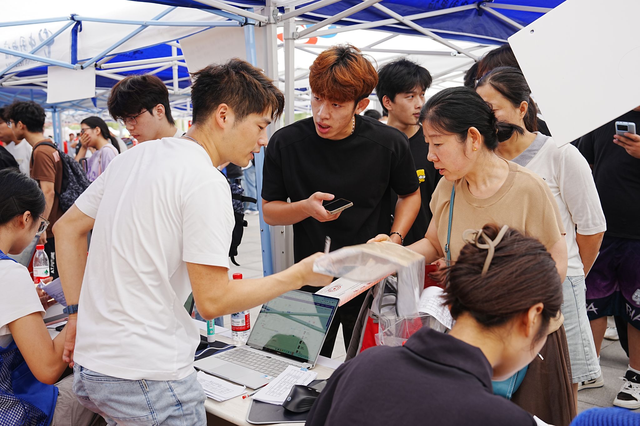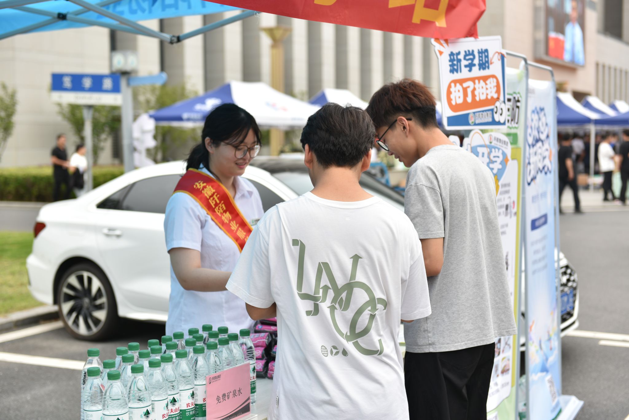 为营造浓厚的迎新氛围,学校不仅布置了主题展板,还设置了趣味打卡点,很多新生与家人纷纷驻足合影,记录大学生活“第一天的笑容”。迎新服务站也贴心准备了免费饮用水、纸巾、扇子及应急用品,细微之处尽显人文关怀。