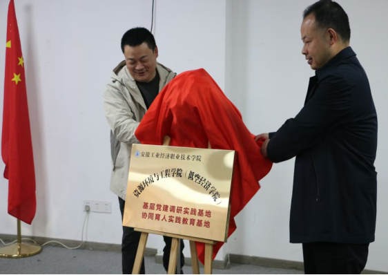 随后,党总支副书记宋庆福和庐阳区润庐残疾人辅助工坊经理刘仁和共同为“基层党建调研实践基地”和“协同育人实践教育基地”揭牌。资环学院与润庐残疾人辅助工坊共建实践教育基地,是落实立德树人根本任务、深化校企协同育人的重要举措,既为学院学子搭建了接触社会、践行公益的实践平台,也为残障人士事业发展注入了青春力量。刘仁和对学院的支持表示感谢,他希望以基地揭牌为契机,进一步深化双方合作,让更多青年学子了解残障人士群体,传递社会温情。