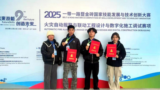 近日,在贵州举办的2025一带一路暨金砖国家技能发展与技术创新大赛——火灾自动报警与联动工程设计与数字化施工调试赛项中,安徽工业经济职业技术学院参赛团队表现优异,荣获三等奖,实现了我院在该高水平国际赛事上的突破。