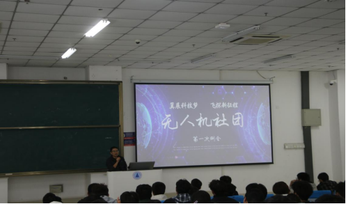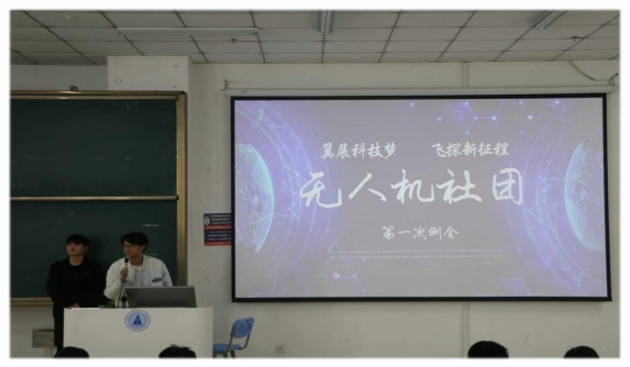 近日,无人机社团在主教114教室举办成立仪式,并召开主题为“翼展科技梦 飞探新征程”第一次例会。社团指导老师刘明众、王帅及张俊出席,会议由无人机社团社长刘小雨主持。
