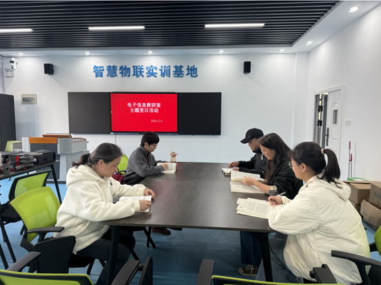 (智能制造学院:钱宗斌 审核:蒋鸣东 孙继胜)为进一步发挥党建引领作用,推动专业建设与党建活动深度融合,助力电子信息工程技术专业高质量发展,2025年11月4日,电子信息教研室党支部在钢构楼二楼开展专题主题党日活动,全体党员教师参与此次学习与研讨。
