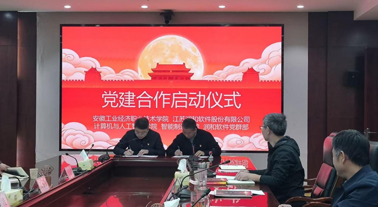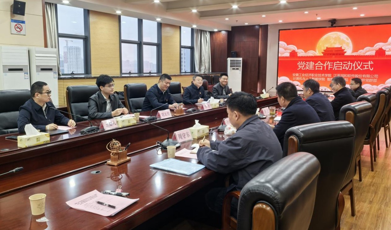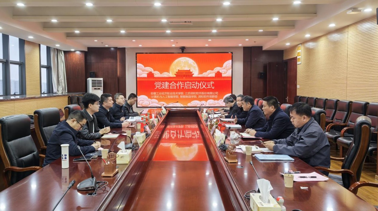 (计算机与人工智能学院:李洁琼 审核:蒋鸣东 孙继胜)2025年11月17日下午,安徽工业经济职业技术学院主教第二会议室内气氛热烈,一场以“党建引领,产教融合”为主题的党建合作启动仪式在此隆重举行。此次活动标志着安徽工业经济职业技术学院计算机与人工智能学院、智能制造学院与江苏润和软件股份有限公司正式开启党建共建新篇章。仪式伊始,主持人计算机与人工智能学院书记王厚红对出席本次仪式的双方领导及代表表示了热烈的欢迎和衷心的感谢。出席仪式的领导包括安徽工业经济职业技术学院党委书记许卫同志,以及江苏润和软件股份有限公司党委副书记、纪委书记、工会主席、副总裁韩波同志等。在仪式上,许书记首先发表致辞。