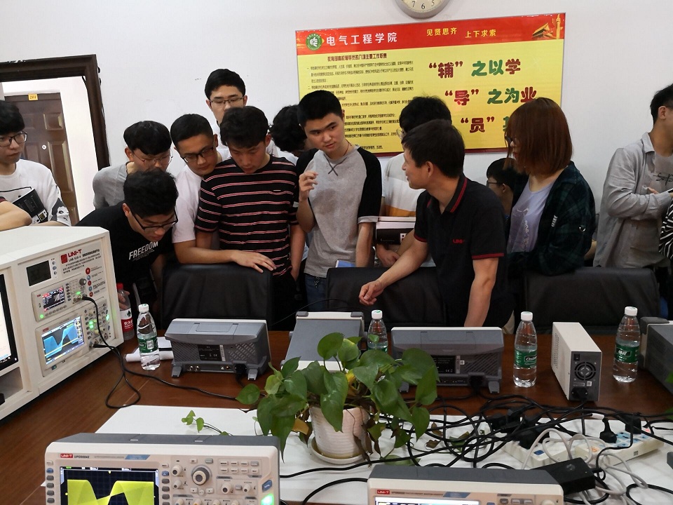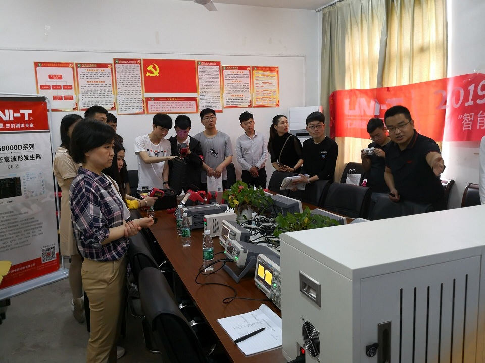 2019年4月25日上午,综合楼205办公室,电气工程学院应用电子教研室组织举办了一场校企合作创新研讨——“2019优利德智能开放创新实验室全国高校巡回研讨会”,主题旨在让全院师生近距离接触前沿教学仪器设备,近距离感悟应用电子技术的创新领域。