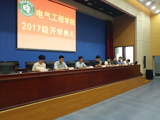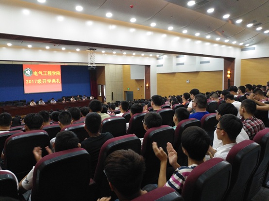 9月10日上午,电气工程学院2017级新生开学典礼在主教学楼二楼报告厅举行。电气工程学院院长唐永伦、院长助理姚烨、团总支书记郭强、新生辅导员廖慧惠、桂婷婷、许冬出席了开学典礼。