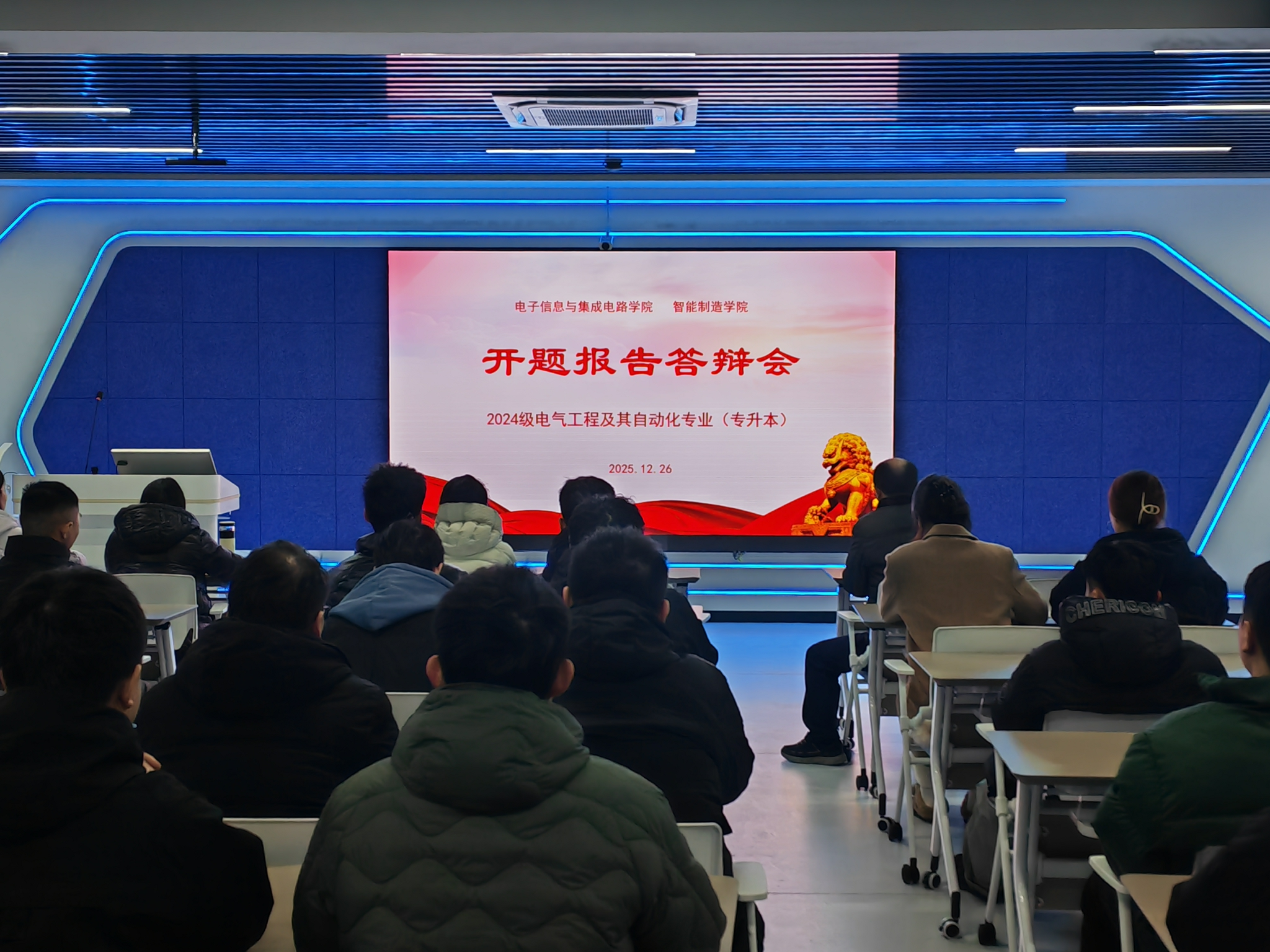 (智能制造学院:张迪 审核:蒋鸣东 孙继胜)为严格把控联合培养本科专业人才培养质量,筑牢毕业论文写作基础,2025年12月26日,合肥师范学院电子信息与集成电路学院与智能制造学院联合培养的电气工程及其自动化专业2024级学生毕业论文开题答辩会在图书馆201多功能厅顺利举行。此次答辩会以“共研标准、共把关口、共育人才”为核心,组建了专业权威的评审团队,为联合培养人才培养质量保驾护航。