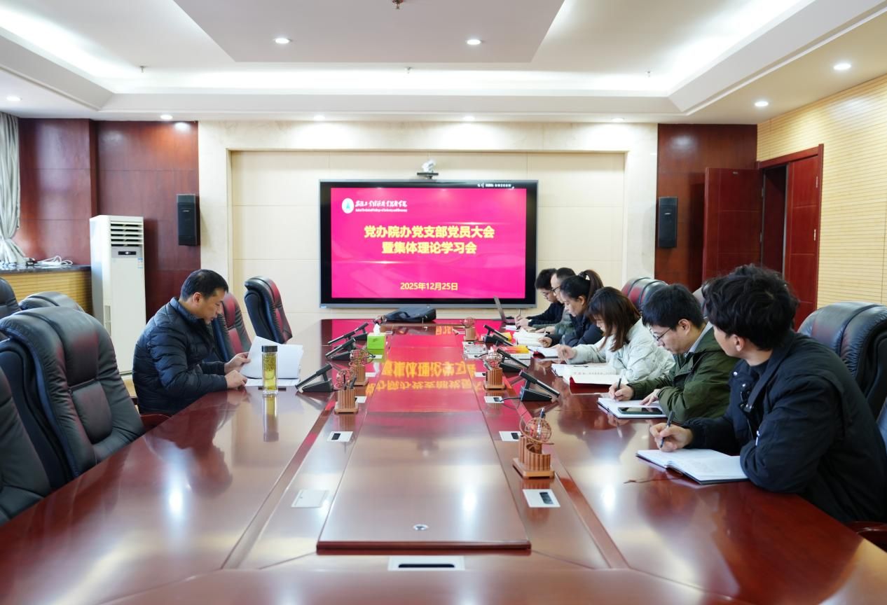 12月25日上午,党办院办党支部在教学主楼第一会议室召开党员大会暨集体学习会,支部全体党员参加。会议由支部书记张旭刚主持。