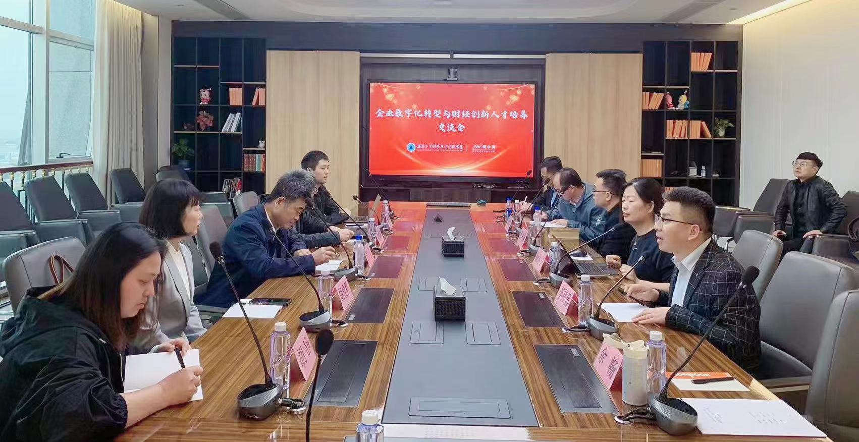 党委书记许卫(左三)赴厦门正保远程教育集团,校企交流华为数字机器人工坊与数字财经创新中心等项目共建情况