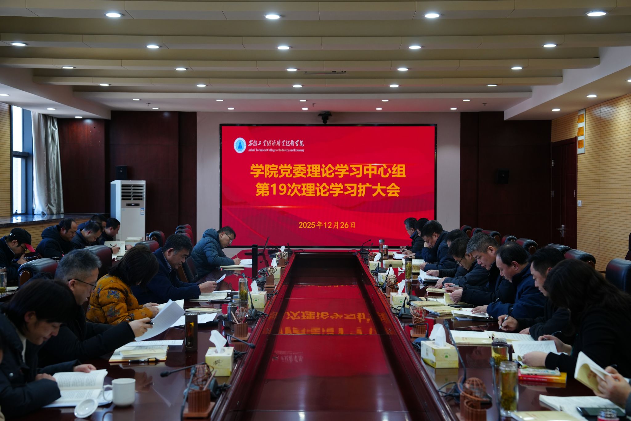 12月26日下午,学院党委理论学习中心组召开第19次理论学习扩大会议。党委书记、理论学习中心组组长许卫主持并讲话,党委理论学习中心组成员出席会议并领学相关内容。各二级学院党政主要负责人、各部门主要负责人参加会议。