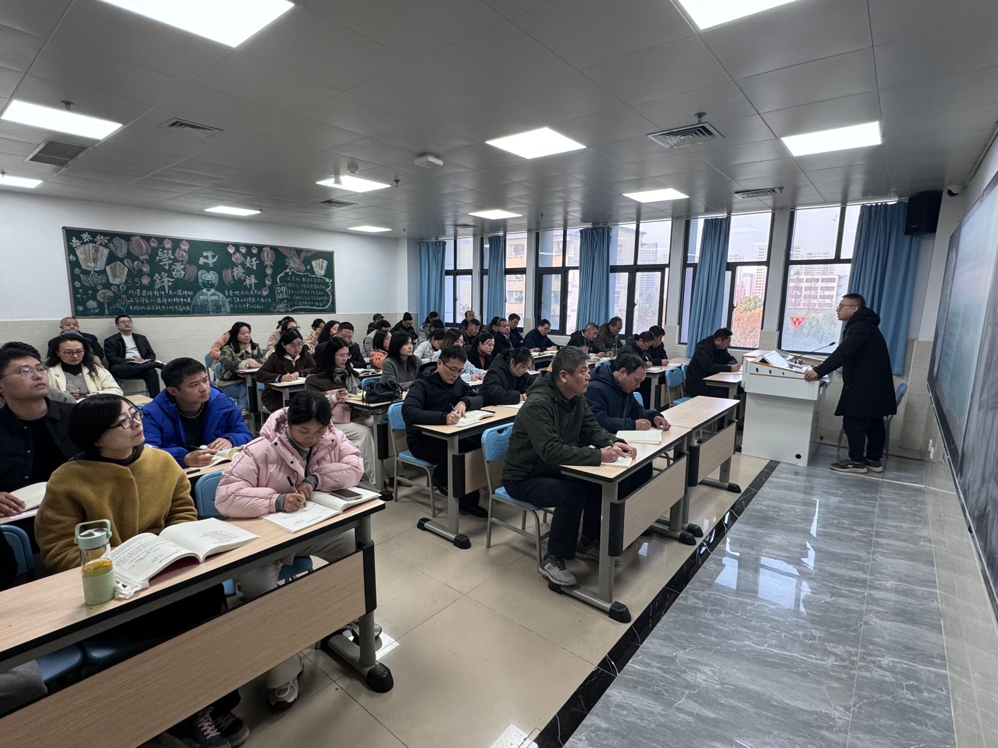 12月29日下午,党委委员、副院长吴飞以《深学笃行党的二十届四中全会精神 勇担“十五五”现代化新使命》为题讲授专题党课,文化旅游与教育学院党总支、公共教学部党总支、继续教育学院党支部、教务处党支部、图书馆党支部、总务处党支部、质量管理处全体在职党员、预备党员等60余名党员聆听党课。