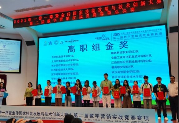11月7日至9日,2025“一带一路”暨金砖国家技能发展与技术创新大赛第二届数字营销实战竞赛全国总决赛在东莞职业技术学院举行,安徽工业经济职业技术学院数智财商学院两支代表队喜获佳绩。谢斐、龚丽兰老师指导的李振华、朱传旗同学获得高职组国赛金奖,鲍玮、储娜老师指导的罗尚宇、张爱娟同学获高职组国赛铜奖,充分展现出学院学子卓越的专业技能与竞技风采。