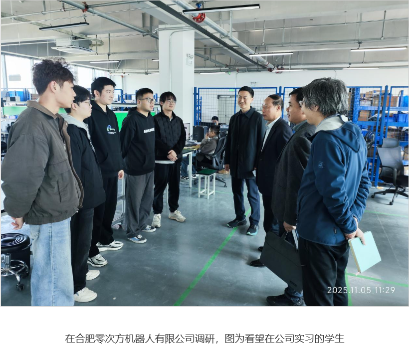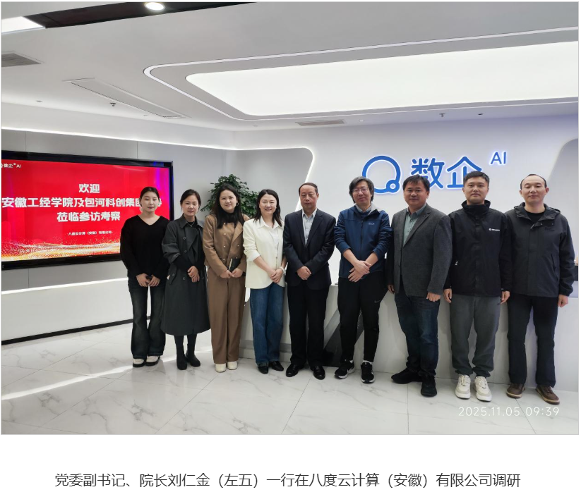 (供稿:孙荣会 审核:刘欣怡 王厚红)为深入落实“书记校长访企拓岗促就业”专项行动要求,进一步拓展毕业生高质量就业渠道,11月5日,党委副书记、院长刘仁金带领计算机与人工智能学院、智能制造学院负责人及学院校企合作办公室相关人员,先后走访八度云计算(安徽)有限公司、皖新传媒数字化人才培养基地、合肥中科深谷科技发展有限公司、合肥零次方机器人有限公司,校企双方围绕人才培养对接、实习实训合作及就业岗位拓展等工作开展深度调研交流。