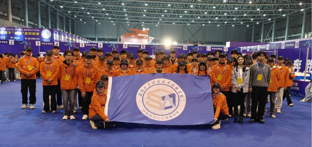 (供稿:申小辉 审核:毕倩茹 王厚红)2025年11月6日至8日,合肥滨湖国际会展中心9号馆内,“奔跑江淮”城市马拉松赛(合肥站)徽商银行2025合肥马拉松赛前物资发放工作热火朝天进行。计算机与人工智能学院积极响应赛事组委会的号召,迅速动员200名学生志愿者为这场备受瞩目的城市体育盛会贡献了力量。由其中60名志愿者组建的“合小青”赛前服务队,他们全力投入到全程马拉松和半程马拉松共计25000名选手的号码簿发放工作中。