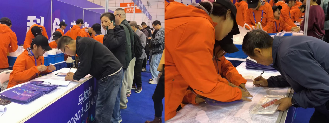 在保障发放效率的同时,志愿者们始终将选手的需求放在首位,用细致入微的服务传递着城市的温暖。遇到对流程不太熟悉的选手,他们会放慢语速,耐心地一步步讲解领取步骤;对于行动不便的选手,主动上前搀扶,协助其完成整个领取过程;遇到选手提出的一些疑问,比如比赛路线、补给点设置等,志愿者们也会凭借自己提前了解的信息,尽可能详细地给予解答。