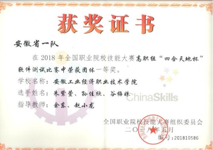 2018年全国职业院校技能大赛高职组“四合天地杯”软件测试比赛团体一等奖