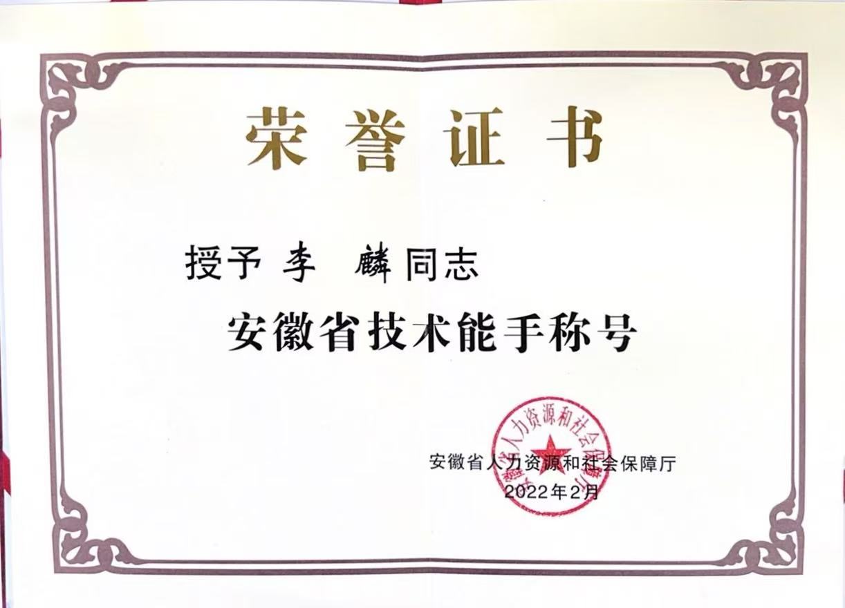 安徽省技术能手 |