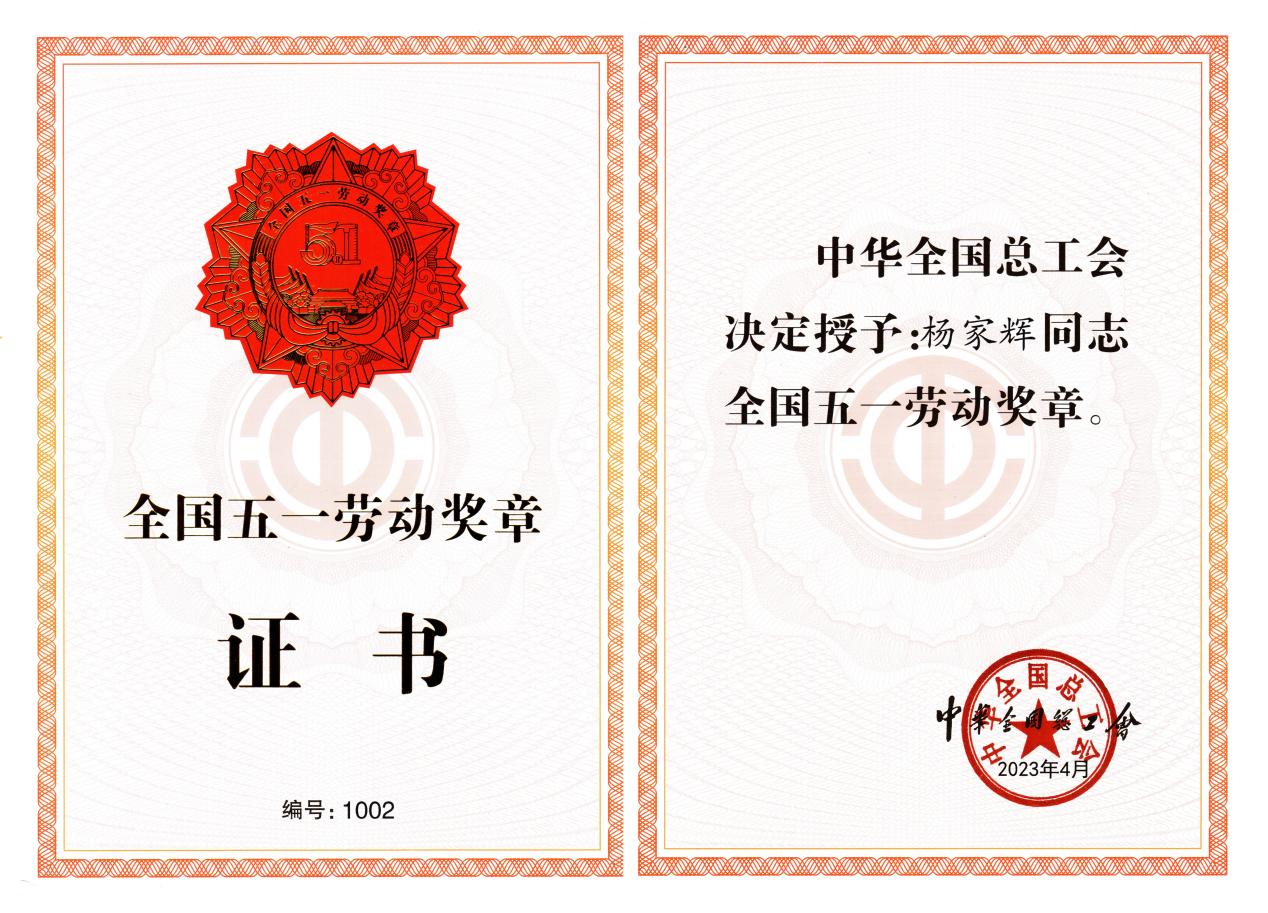荣获2023 年全国五一劳动奖章