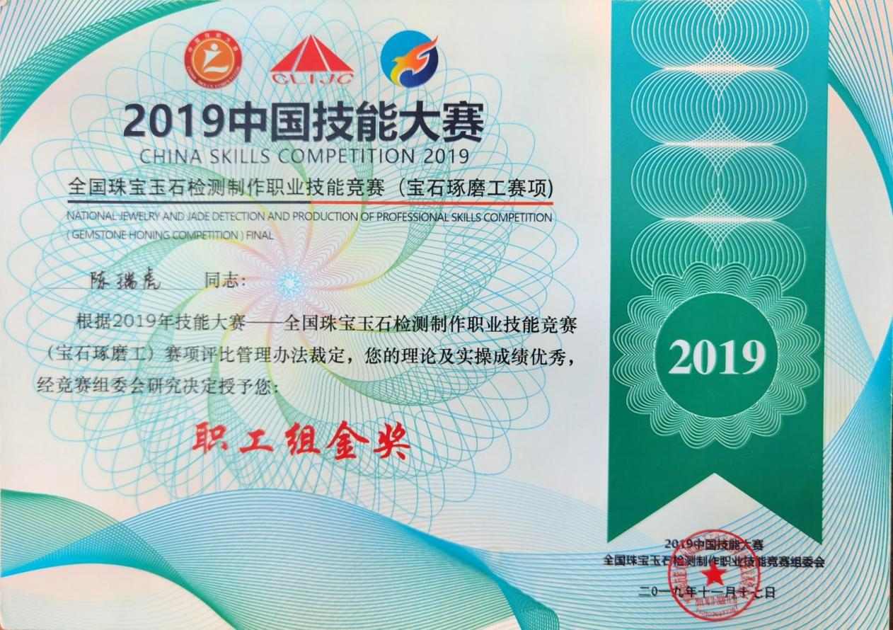 4.2019年中国技能大赛—全国珠宝玉石检测制作职业技能竞赛”职工组金奖(陈瑞虎)