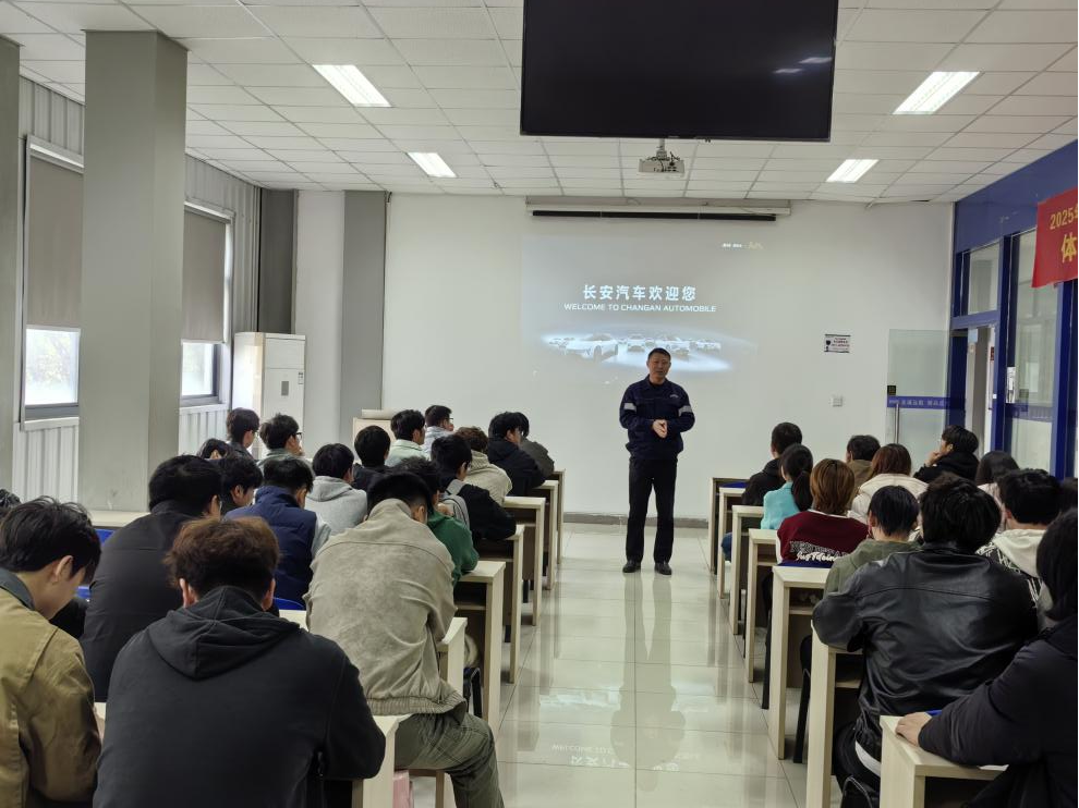 现场参观结束后,合肥长安汽车有限公司校企合作负责人与订单班学生举行了交流会。会上,企业方首先进行了企业宣讲,系统介绍了长安汽车的发展历程、企业文化、战略布局及行业地位。针对学生普遍关心的员工福利待遇与职业发展通道,负责人详细讲解了企业搭建的多元化晋升体系,为同学们勾勒出清晰的职业成长图景。