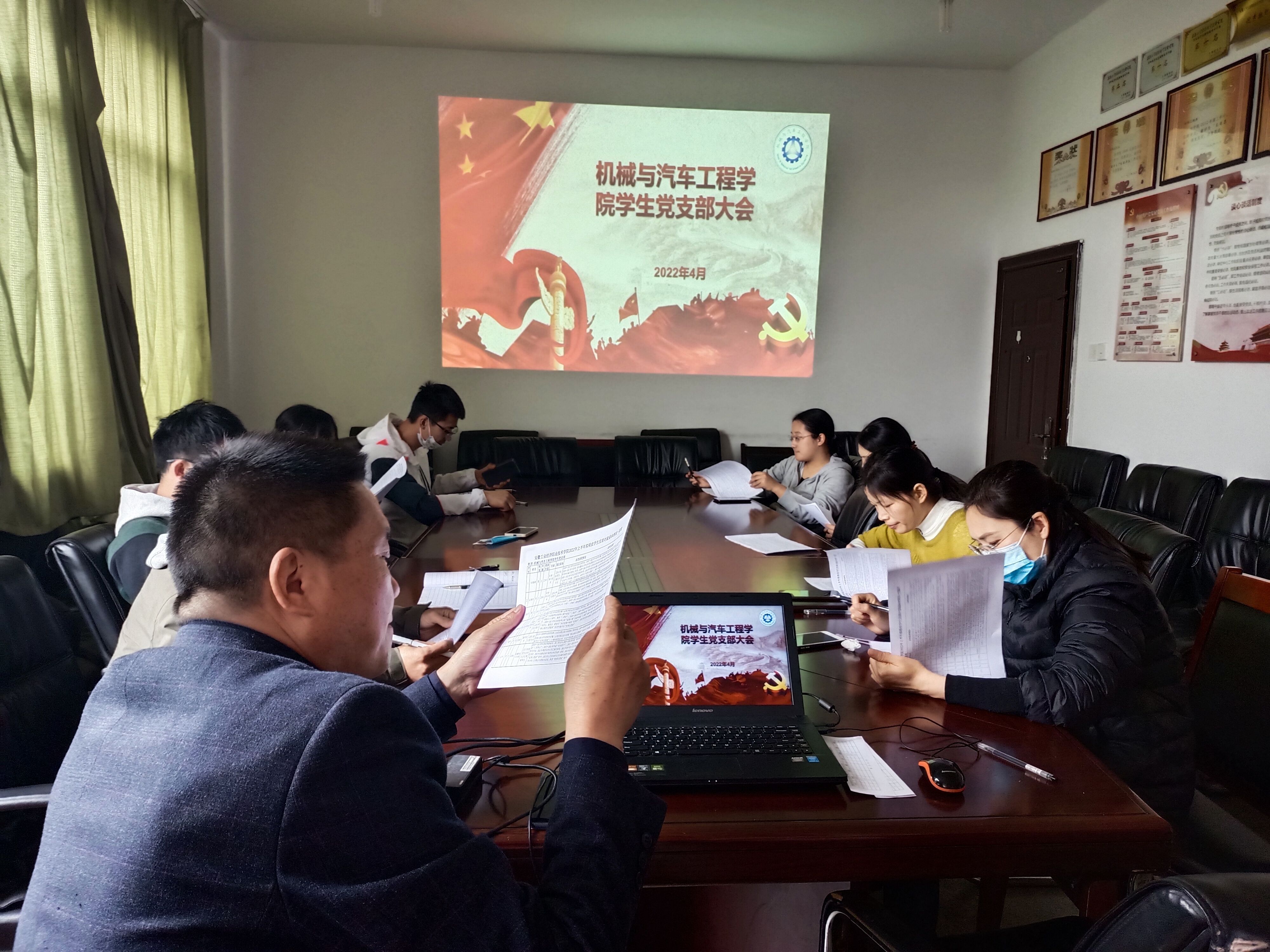 机械与汽车工程学院于2022年4月22日在综合楼407召开学生党支部大会。机械与汽车工程学生党支部全体党员参加。