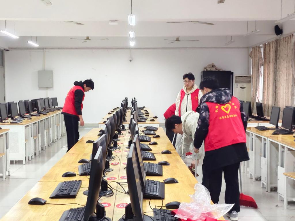 经过一个多小时的努力,实训室焕然一新,原本杂乱无章的角落变得整洁有序,实训设备也焕然一新,仿佛重新焕发了生机。志愿者们看着自己的劳动成果,脸上洋溢着满足和自豪的笑容。