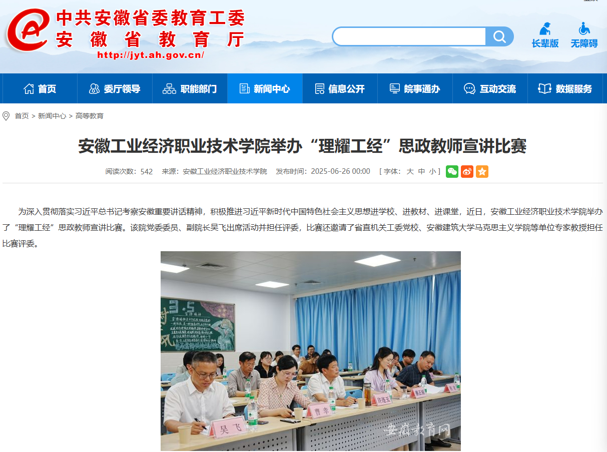 【媒体聚焦】安徽教育网:安徽工业经济职业技术学院举办“理耀工经”思政教师宣讲比赛