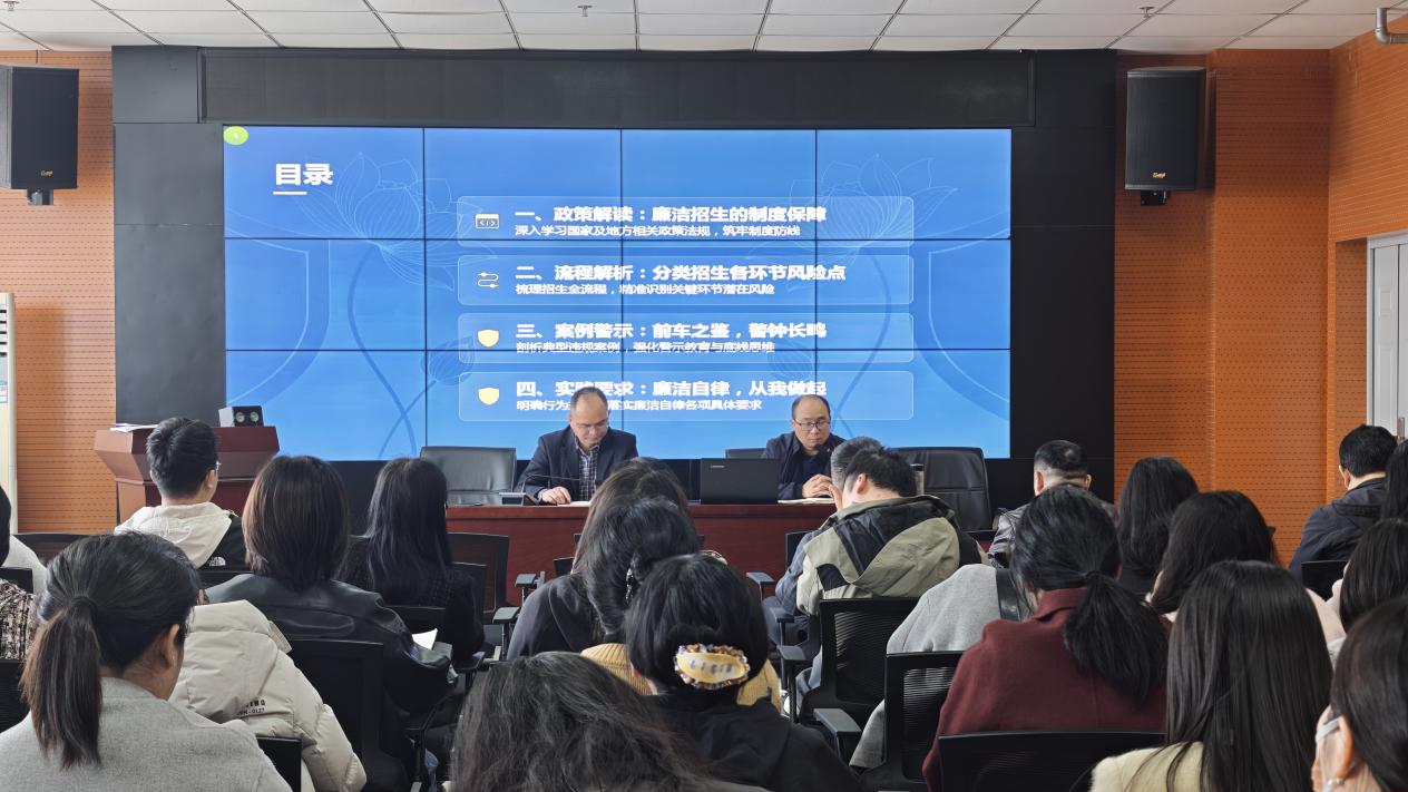 本次“清风课堂”通过系统化、案例化、实践化的教育模式,有效提升了教职工的廉洁风险防控能力,为构建公平、公正、公开的招生环境奠定了坚实基础。(供稿:黄民 审核:柴建华)