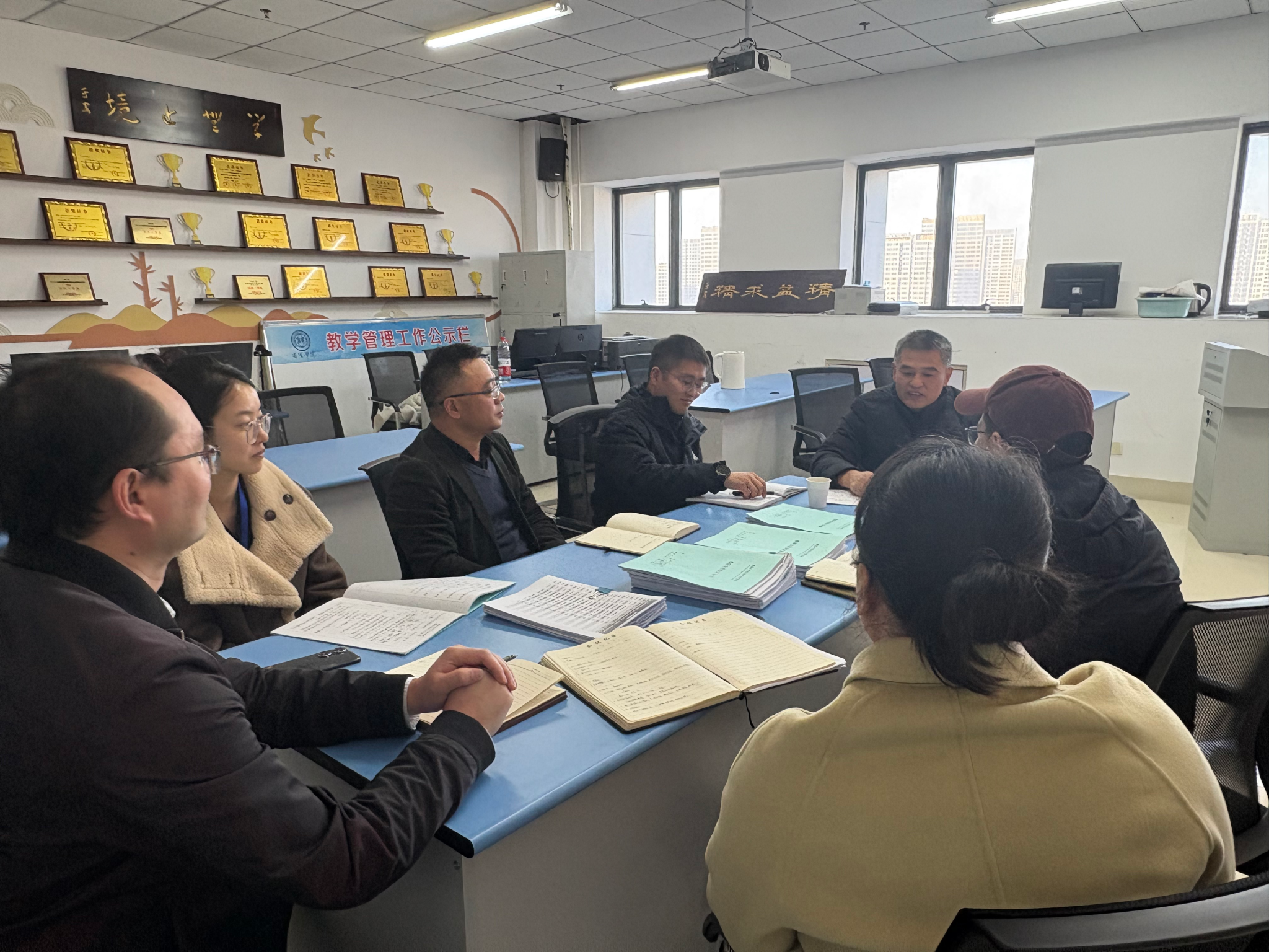随后,各教研室主任分别就本教研室的教学特色与改进思路,同督导专家进行了热烈的交流探讨。与此同时,督导室阮旭东老师对学院提交的授课计划、教案、教研室活动记录等教学资料进行了细致查阅。
