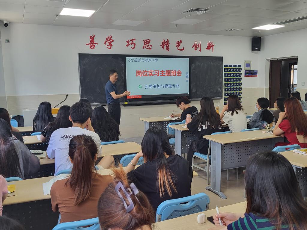(作者:文化旅游与教育学院团总支 黄邢、吕刚 审核:谌莲莲、王厚红)岗位实习作为学生从校园学习过渡到社会工作的一项重要内容,为了推动理论与实践深度结合、让学生提前适应工作岗位,6月12日上午,文化旅游与教育学院2021级辅导员吕刚老师为2021级会展策划与管理12161班48名同学们开展了一场关于“岗位实习准备和答疑”的主题班会,在对学生的岗位实习意向进行摸查的同时为同学们解疑答惑。