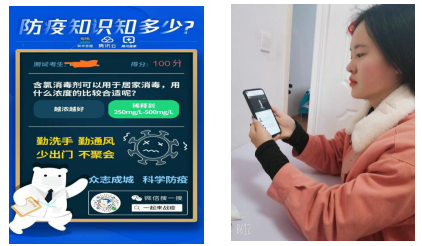 线上防疫知识竞赛于2月23日晚上20:00举行,参加对象覆盖学院所有班级。10分钟紧张刺激的知识比拼令参赛考生了解到了新型冠状病毒的产生、发展以及如何做到科学预防等有效知识。最终共产生优秀个人项目26名;优秀宿舍项目14个;优秀集体项目3个。