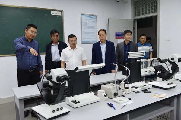 检查结束后,程雪涛一行深入学院新图书馆、深地钻探工程研究中心、世界技能大赛珠宝加工项目安徽省集训基地、宝玉石鉴定实训室等场所进行调研指导,了解学院近年来在人才培养、教学改革、产教融合、校企合作等方面发展建设的情况。