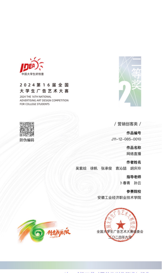 全国大学生广告艺术大赛省一