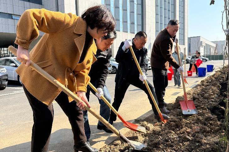 植树环节结束后,双方还进行了座谈交流。田振雨介绍了阡陌物业集团从成立到稳定运营以来的发展经验以及勇于承担社会责任的具体举措,党总支相关负责人介绍了企业党务工作标准化、党建经营融合发展的实践经验。张俊峰介绍了总务处党支部组织架构、党建工作及后勤管理工作概况,他希望双方在今后的工作中持续加强沟通和交流,以“党建共建”为载体,深化校企合作,不断提升服务品质,打造更多校园环境“新亮点”和校园风光“打卡点”,不断美化校园环境,让师生员工的校园生活更满意、更舒心。