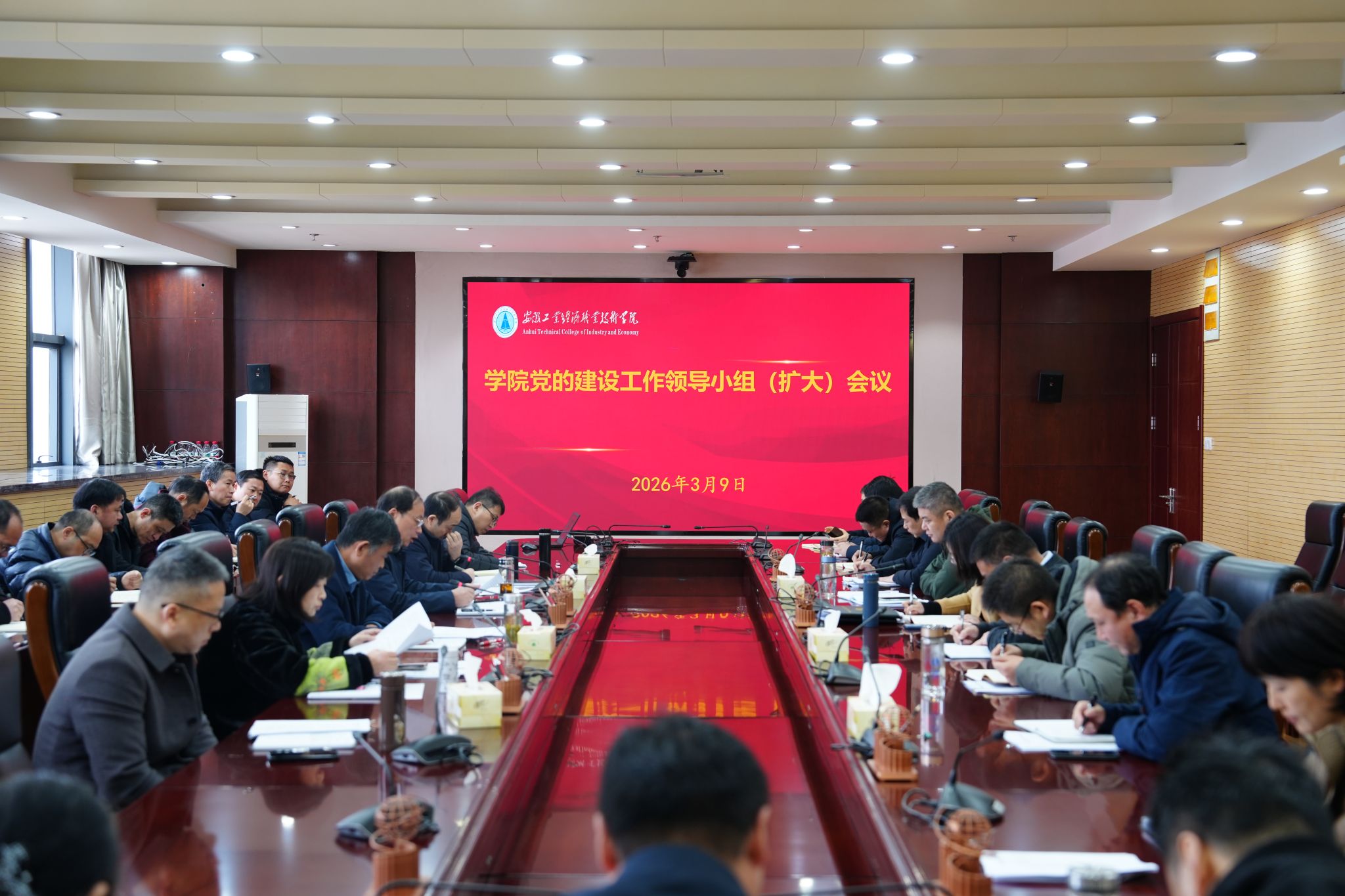 3月9日上午,学院党委在主教第二会议室召开党的建设工作领导小组(扩大)会议,传达学习中央党的建设工作领导小组会议精神和中央办公厅通知精神、省委常委会扩大会议精神以及省地矿局党委扩大会议暨党的建设工作领导小组会议精神,动员部署学院树立和践行正确政绩观学习教育工作。党委书记、党的建设工作领导小组组长许卫主持会议并讲话。党委副书记、院长刘仁金,党委副书记、工会主席周和平领学相关内容,院领导黄雪飞、吴飞、赵凯出席会议。