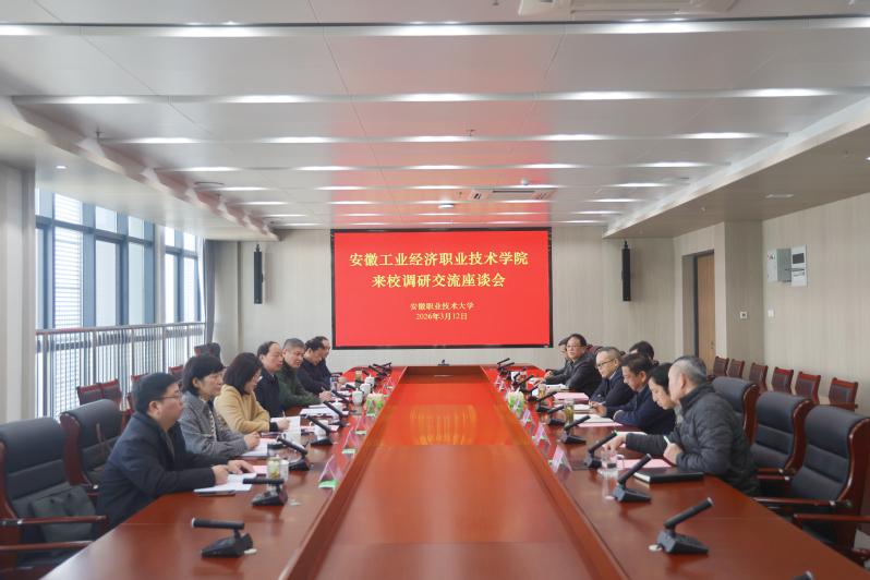 3月12日,党委副书记、院长刘仁金率队赴安徽职业技术大学调研。安徽职业技术大学党委副书记、校长盛鹏参加调研并主持座谈会,安职大有关职能部门主要负责人参加座谈会。