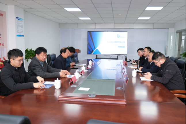 袁中福董事长对学院一行的到来表示热烈欢迎,对学院的办学成果给予高度评价。公司教育事业部负责人纪仁义介绍了企业的文化底蕴、发展历程、业务矩阵及未来规划。