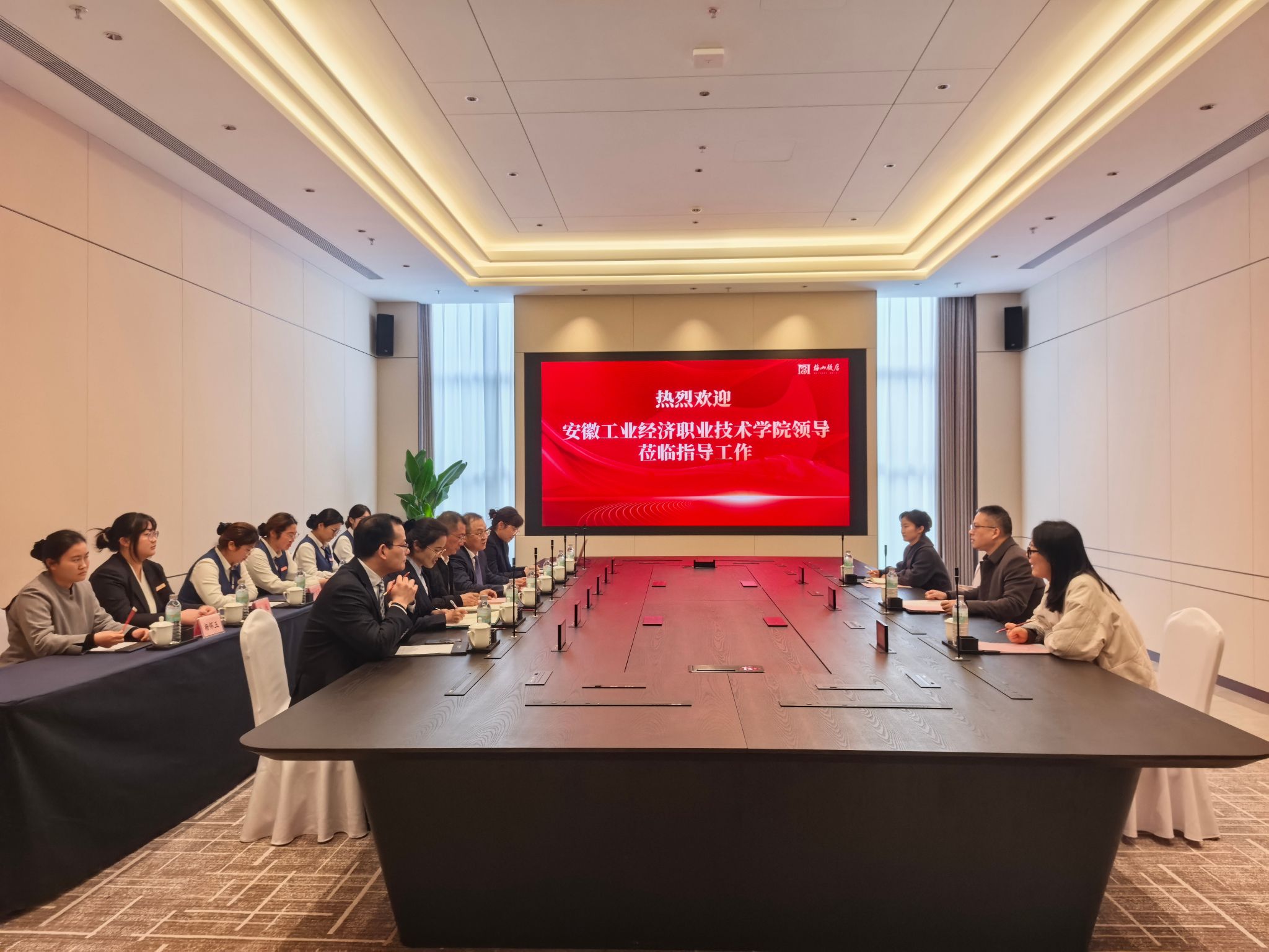 为进一步深化产教融合、校企合作,精准对接企业人才需求,助力学生高质量实习就业,3月20日下午,党委委员、副院长吴飞一行赴合作企业开展访企拓岗专项行动,文化旅游与教育学院党总支书记、院长谌莲莲及相关教师陪同参与。梅山饭店支部委员、总经理杨林,运营总经理韩丹,副总经理刘依涵及各部门负责人接待了吴飞一行,双方召开座谈会议,就实习生培养、订单班合作等事宜深入交流。