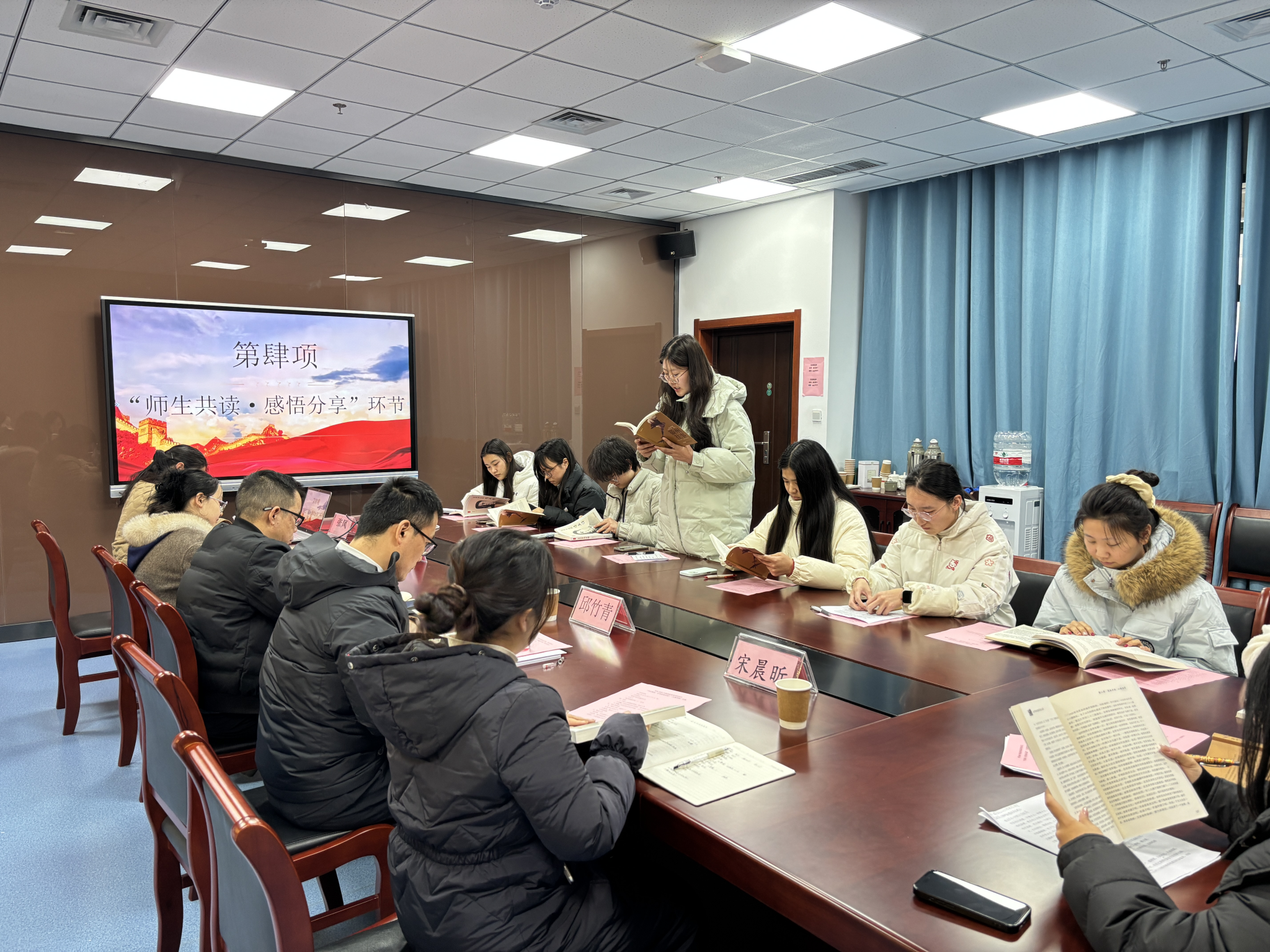 在书记领读环节,文化旅游与教育学院党总支副书记诵读了《我所知道的冯玉祥》与《徽州往事》中的精选片段。他结合书中内容,阐述了红色经典所蕴含的革命精神与历史智慧,引导同学们在阅读中感悟信仰的力量,在思考中明确青年的责任。