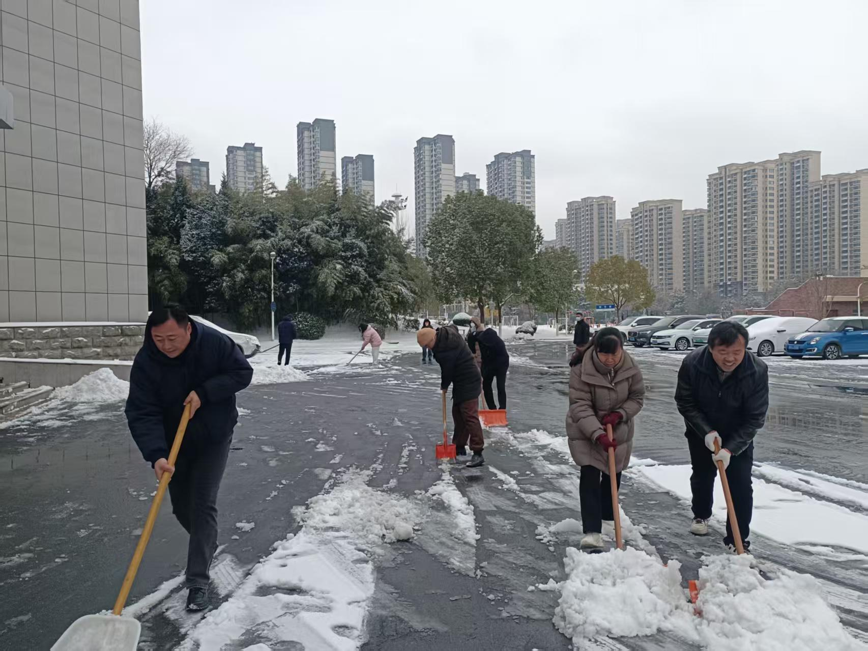 2026年的初雪为校园披上银装,却也造成路面湿滑,给师生出行与教学秩序带来不便。为保障校园通行安全、消除隐患,总务处迅速组织教职工志愿者开展积雪清扫活动,以实际行动守护校园平安。