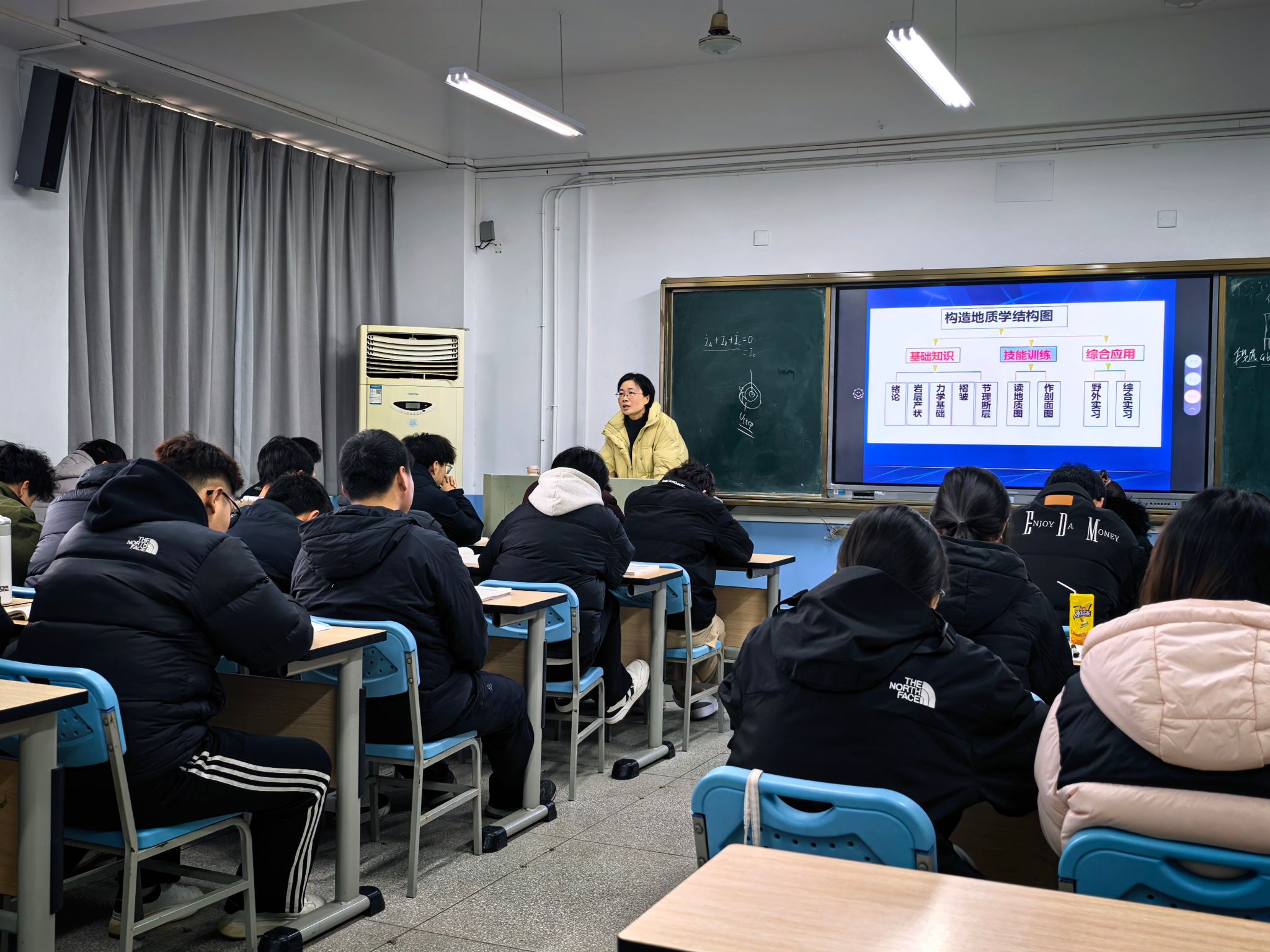 课堂上,黄昕霞老师精神饱满、注重启发引导,紧扣课程教学标准,结合地质工程典型实例,细致讲解课程重点难点,帮助学生清晰把握课程定位、重要意义与核心内容。授课过程中,她将抽象的地质理论与野外地质实践深度融合,课堂专业氛围浓厚,教学环节衔接流畅自然,充分展现了扎实过硬的专业功底与优良的教学素养。