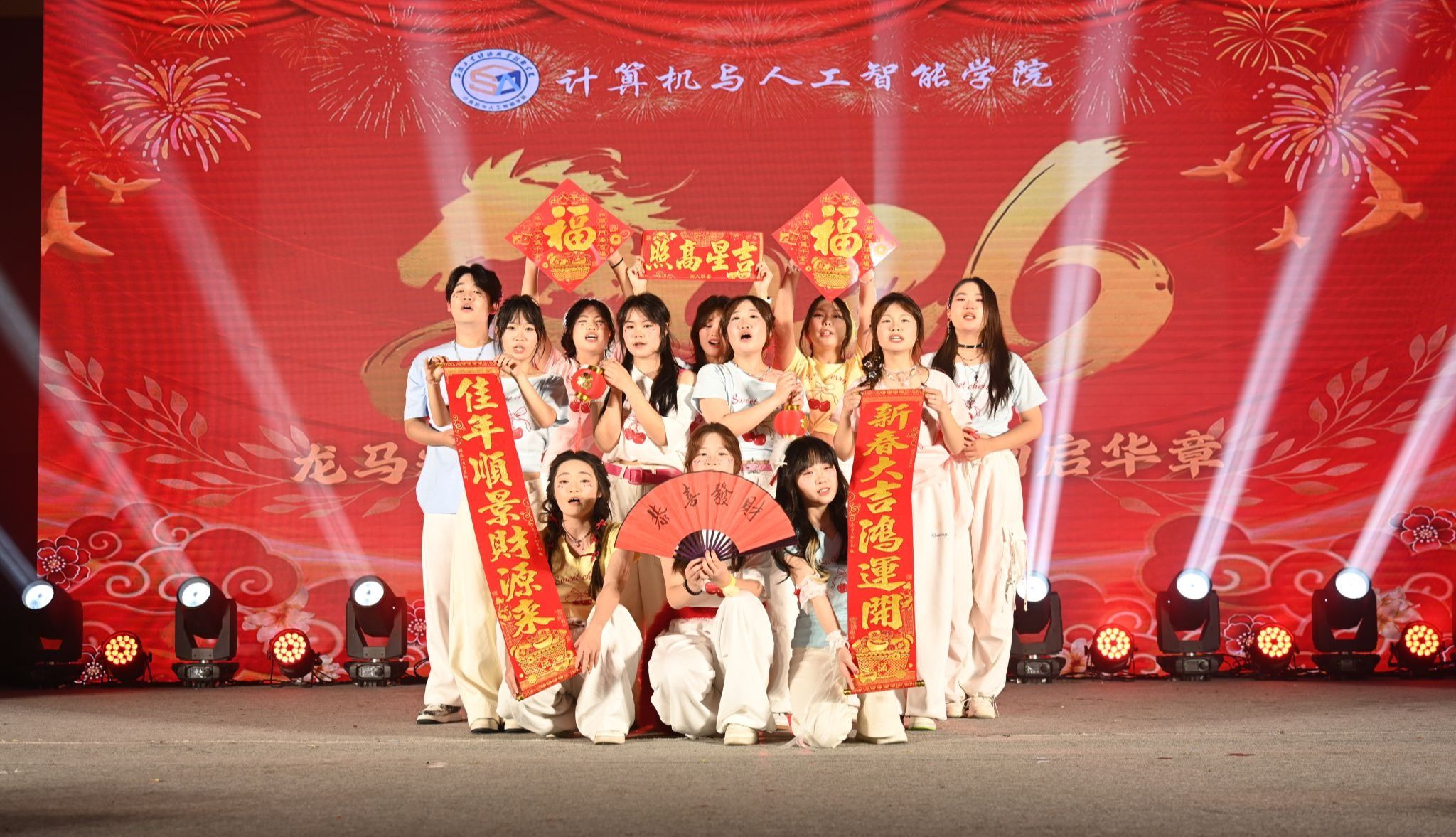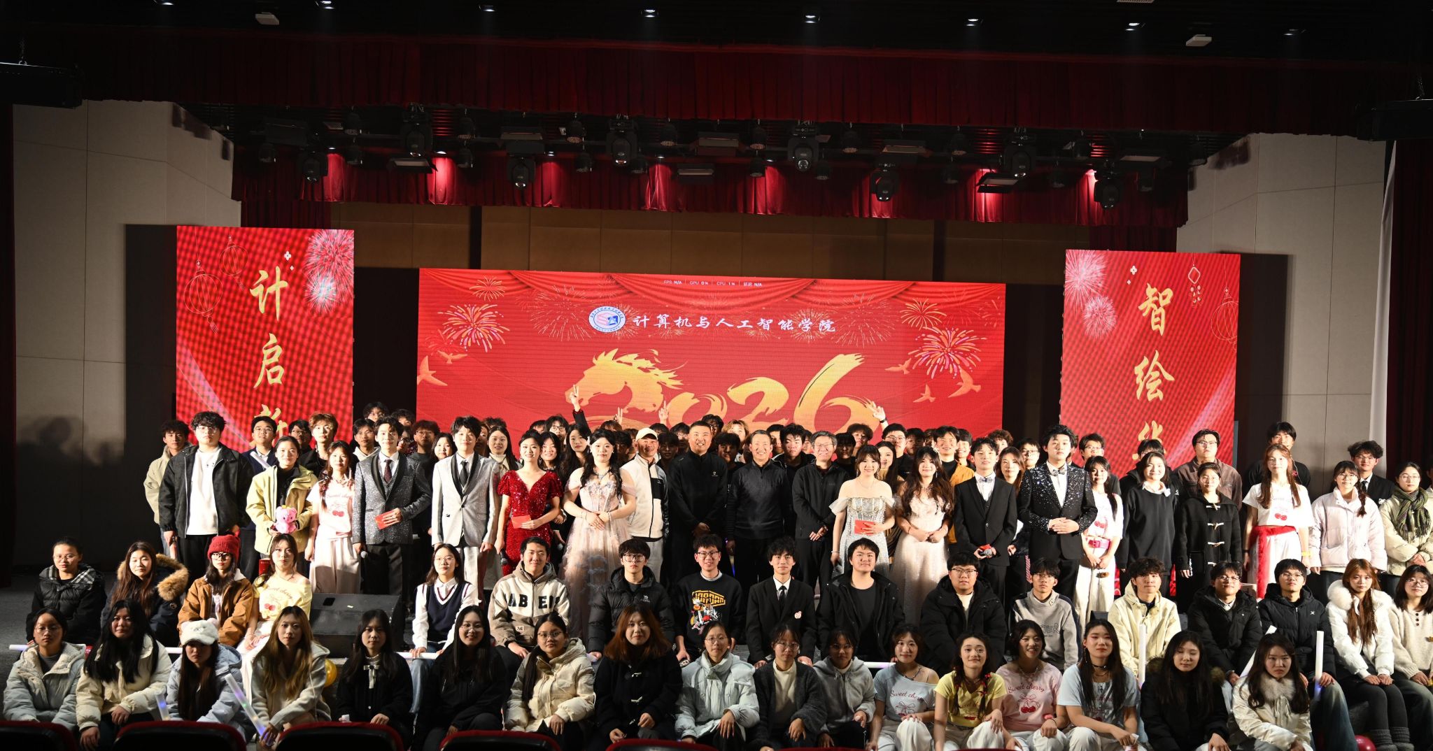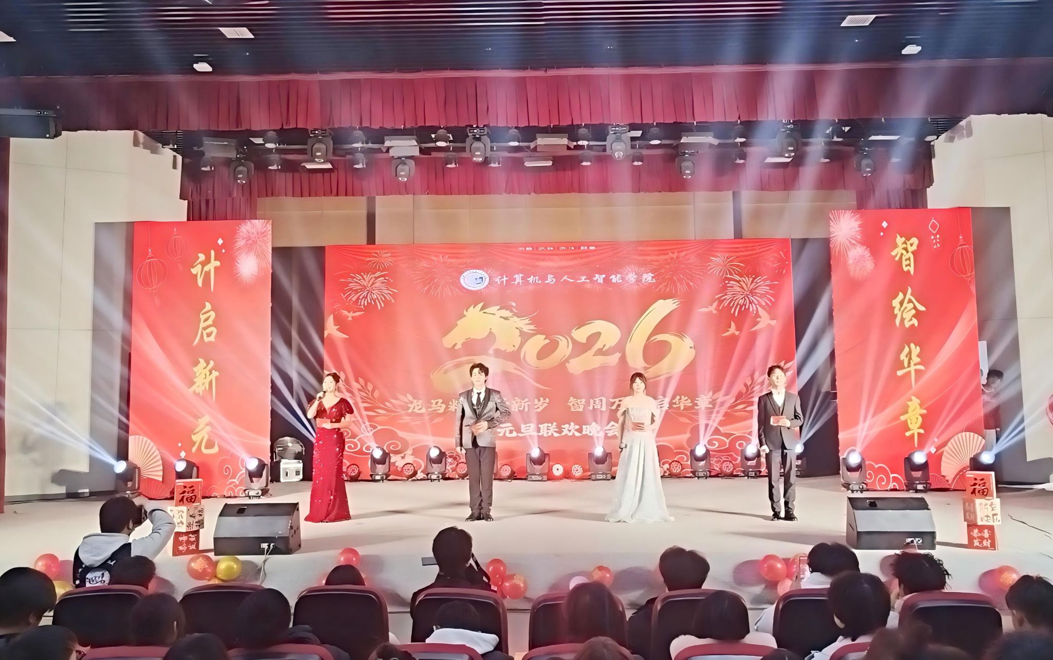 (供稿:赵悦 审核:毕倩茹 王厚红)12月23日,计算机与人工智能学院“计启新元,智绘华章”2026年元旦联欢晚会在热烈的掌声与欢笑声中精彩上演。学院党总支书记王厚红、院长朱晓彦、辅导员老师及600余名同学齐聚一堂,共享盛会。晚会以四个章节层层推进,内外场联动默契,节目形式多样、内容精彩纷呈,充分展现了计智学子朝气蓬勃、多才多艺的青春风采。