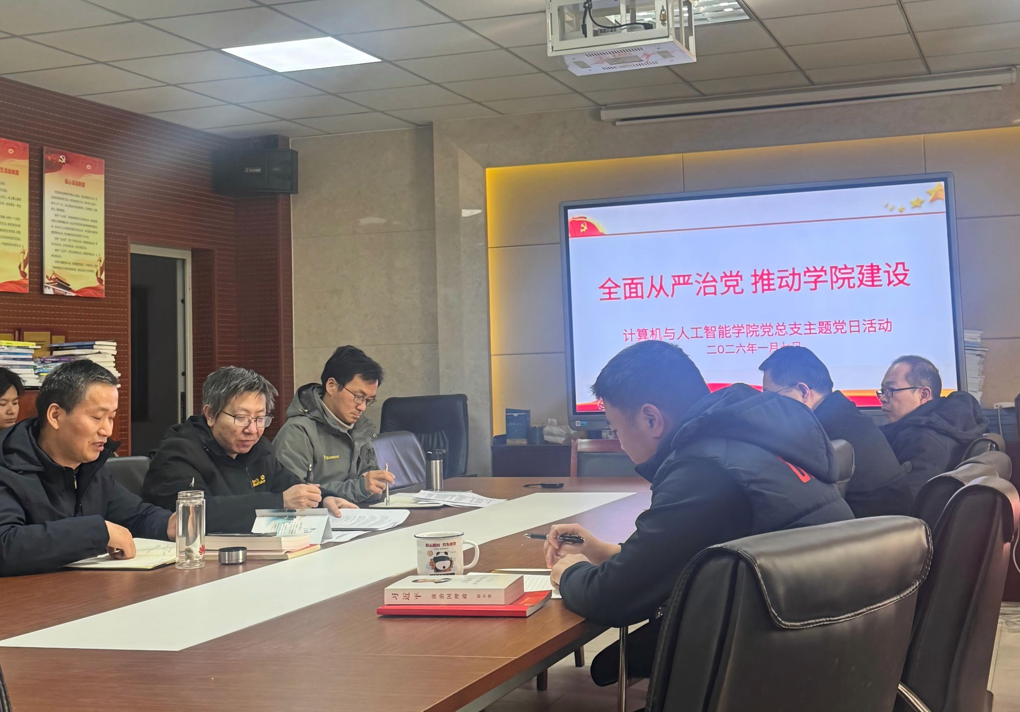 (供稿:陈以志 审核:丁俊 王厚红)为深入学习贯彻习近平新时代中国特色社会主义思想,切实以全面从严治党引领学院高质量发展,2026年1月7日,计算机与人工智能学院党总支组织开展“全面从严治党,推动学院建设”新年首个主题党日活动。活动由学院党总支书记王厚红主持,学院全体党员同志参加,共同学习《习近平谈治国理政》第五卷习近平总书记关于全面从严治党的重要论述,筑牢思想根基,凝聚奋进力量。