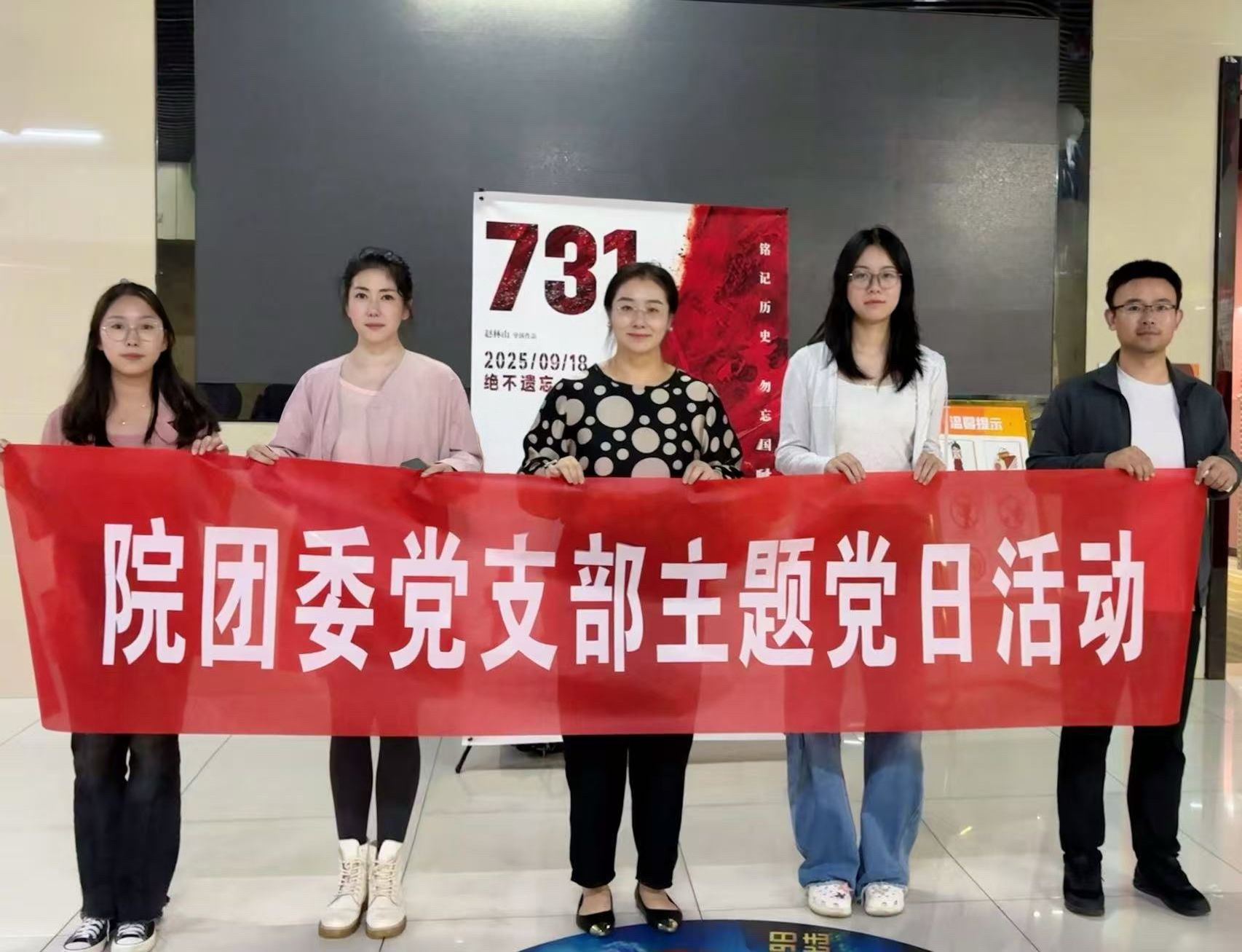 为进一步加强院团委党支部党员的思想政治教育,铭记历史、缅怀先烈,激发爱国情怀与奋斗精神,院团委党支部于9月18日举办主题党日活动,集体观看爱国主义题材电影《731》。