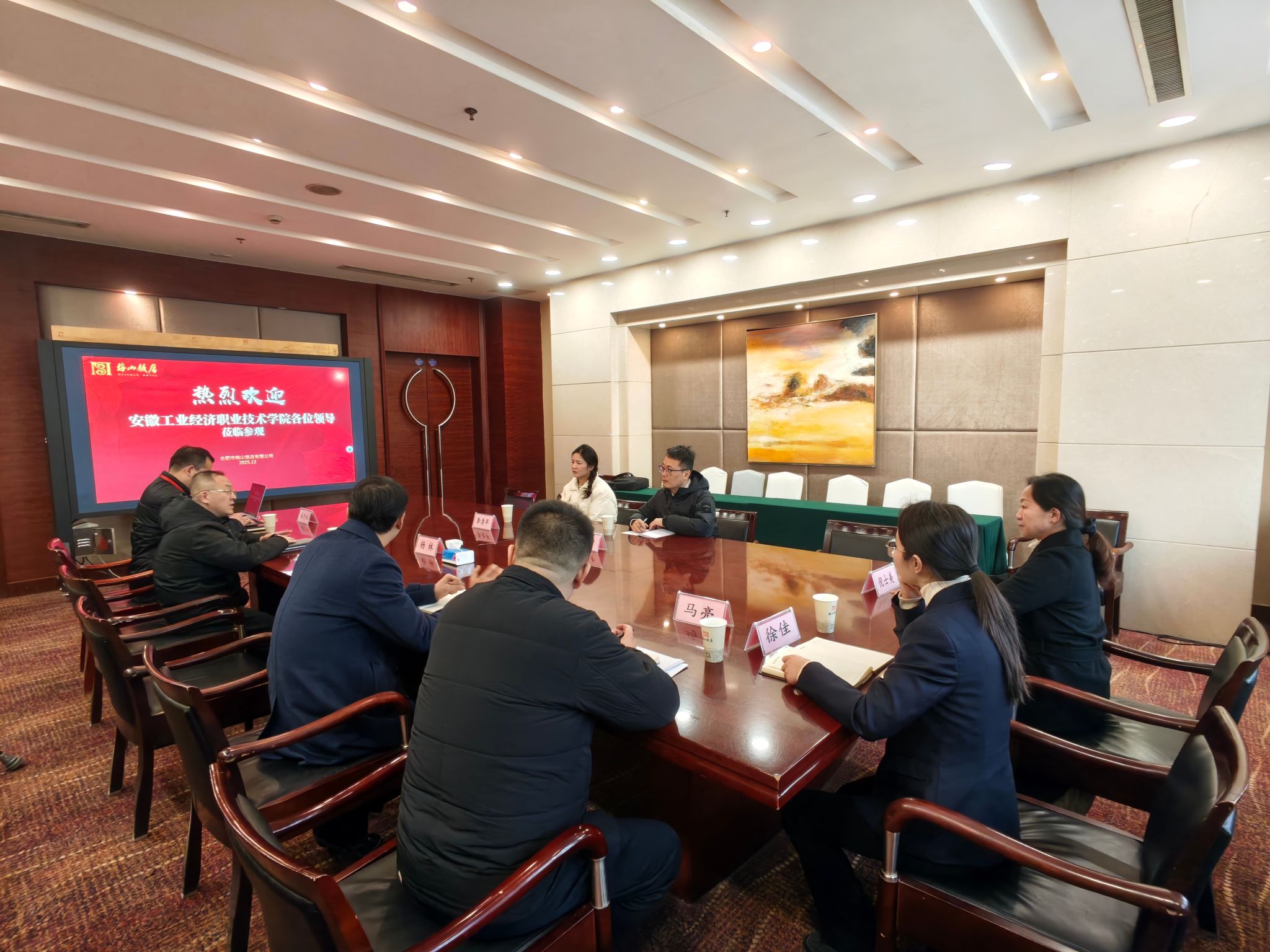 为深化产教融合、拓宽校企合作渠道,精准开拓学生实习与就业途径,12月18日上午,文化旅游与教育学院党总支副书记邱竹青率队赴合肥市梅山饭店开展访企拓岗暨实习单位考察,辅导员李清早老师陪同。