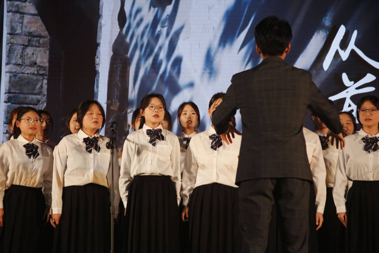 元旦晚会的舞台,成为了检验学习成果的最佳考场。当晚,同学们身着整齐的服装,以饱满的精神状态登场。当《从前慢》熟悉的旋律缓缓流淌,他们用清澈、和谐、充满情感的歌声,将观众带入了一个悠远而舒缓的意境之中。声音的起伏、情感的传递、声部间的交织,都恰到好处,展现出了超越初学者的水准与默契,演出获得了现场观众的高度认可与热烈反响。