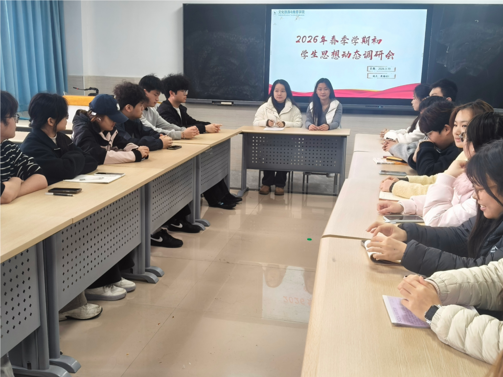 此次学生思想动态调查会,不仅系统掌握了新学期学生的思想状况和实际需求,有效搭建了师生沟通的坚实桥梁,更彰显了学院以学生为中心的工作理念。下一步,学院将对本次会议收集的意见建议进行全面梳理、分类施策,持续优化服务保障措施,强化思想引领和安全教育,精准开展就业指导,切实为学生健康成长、顺利就业保驾护航,助力学子们在新学期凝心聚力、奋勇前行。(文化旅游与教育学院团总支 董青颖 宋晨昕 审核:谌莲莲 邱竹青)
