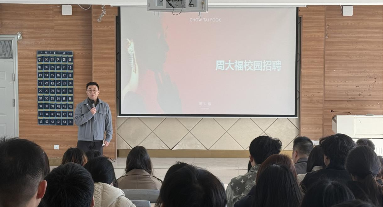11月26日,全球领先的珠宝企业周大福珠宝集团有限公司校园招聘宣讲会在我校顺利举行。珠宝与艺术学院党总支副书记兼副院长李孔亮、周大福珠宝集团安徽区业务副总经理王喆鑫及招聘团队、我校优秀校友现任周大福门店店长郑天娇、专业教师潘可可,以及2026届毕业生共同参加了本次活动。
